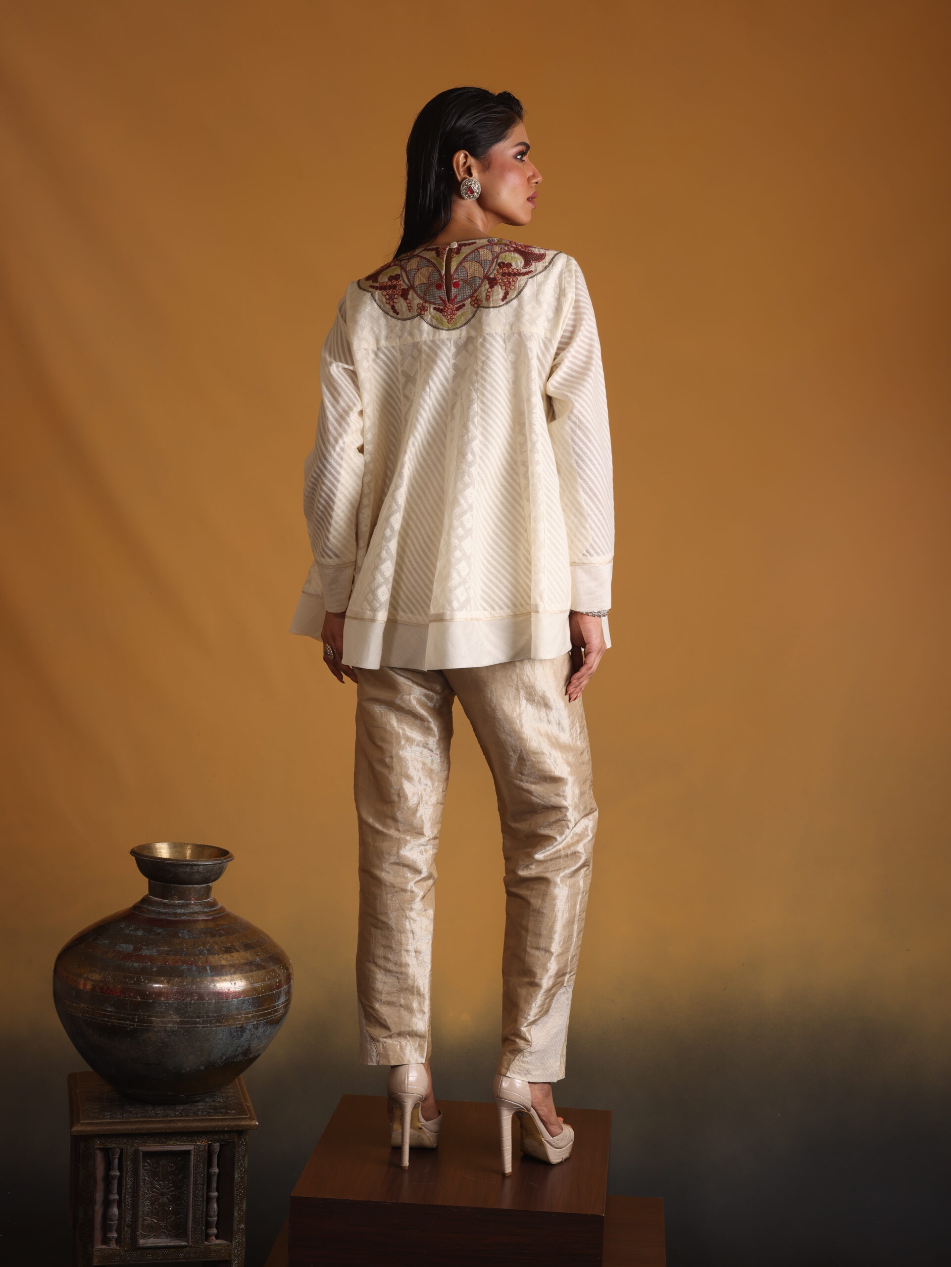 Soft ivory tones meet rich handcrafted detailing for a look rooted in grace and strength.
