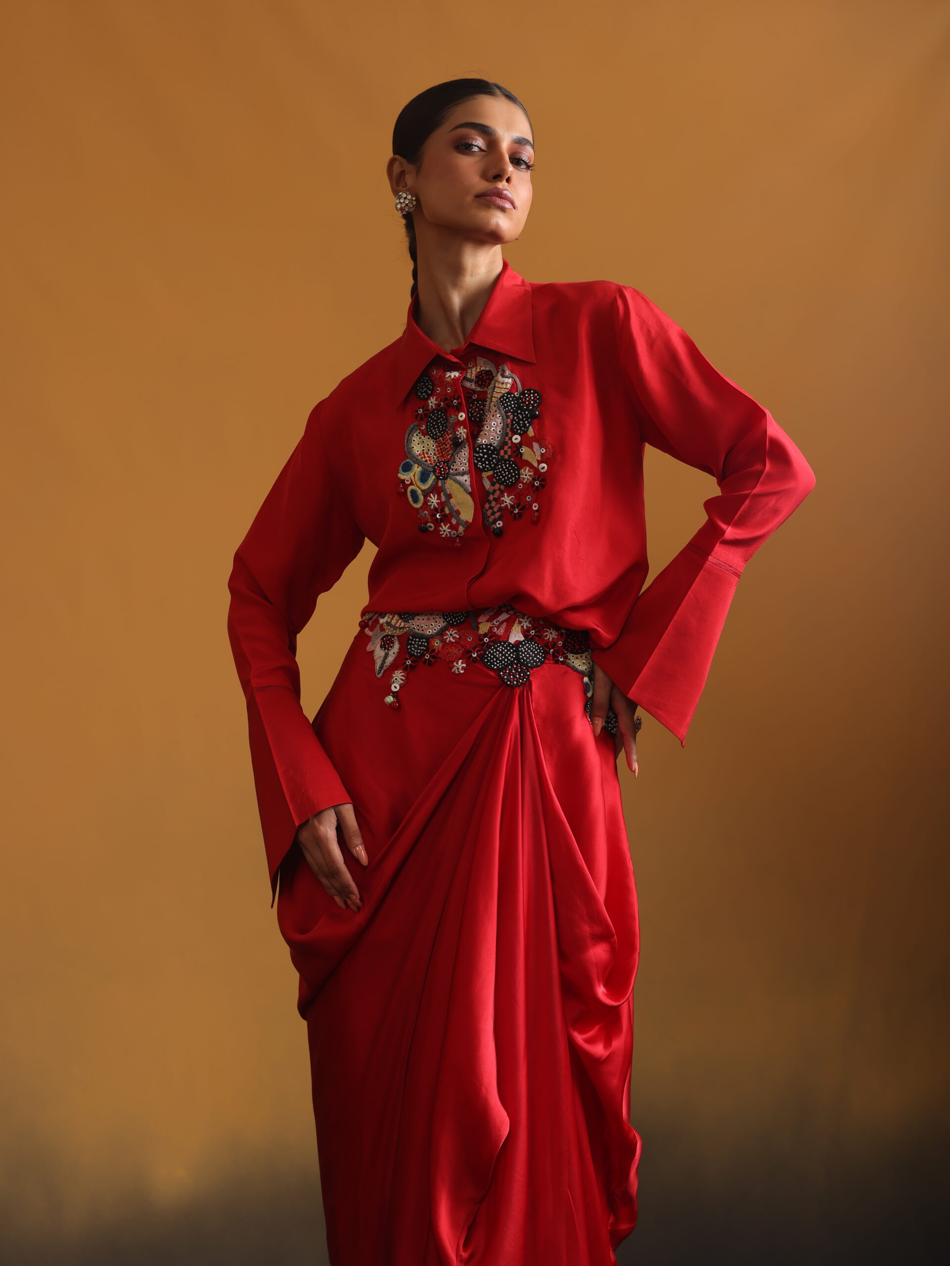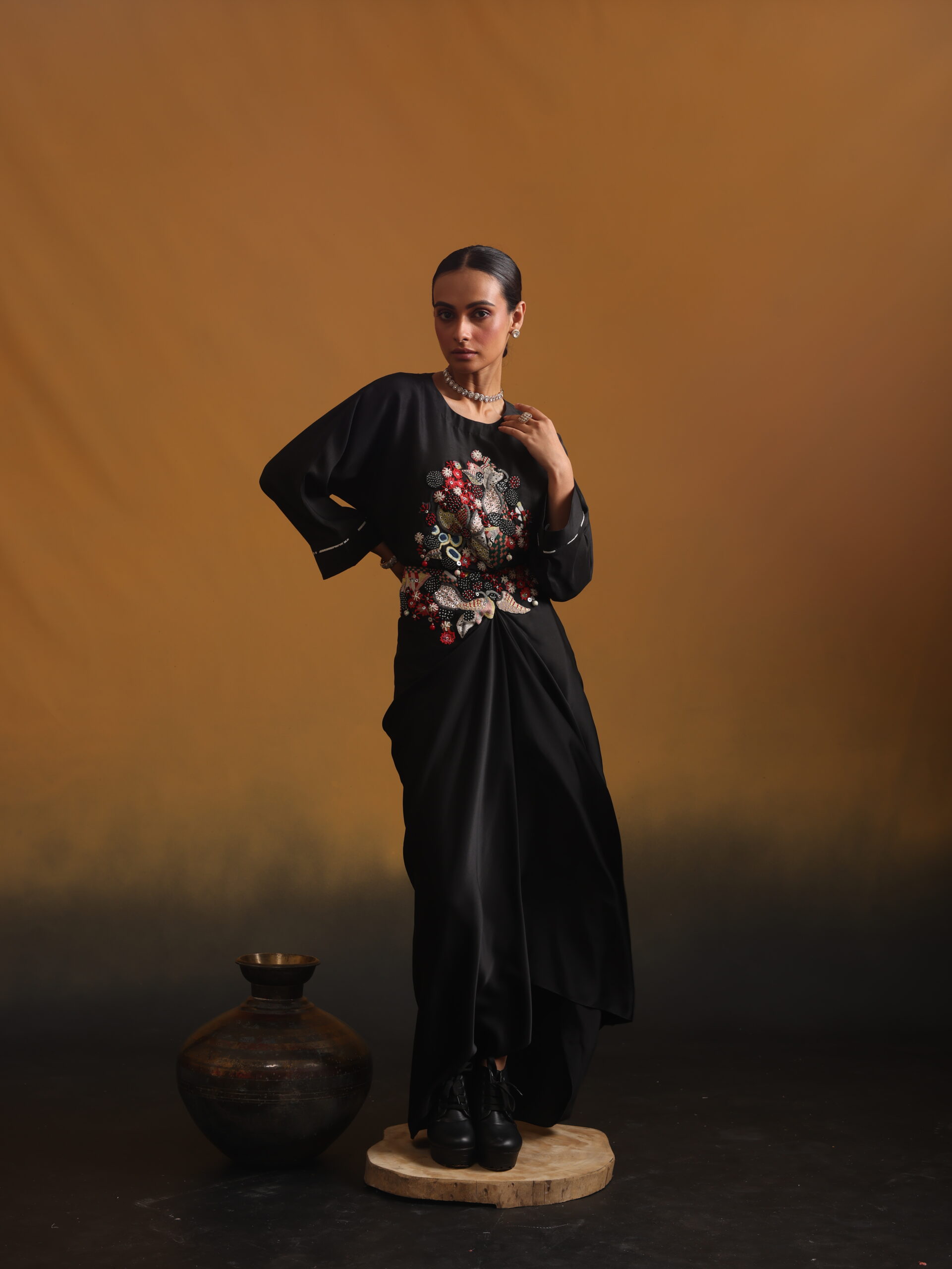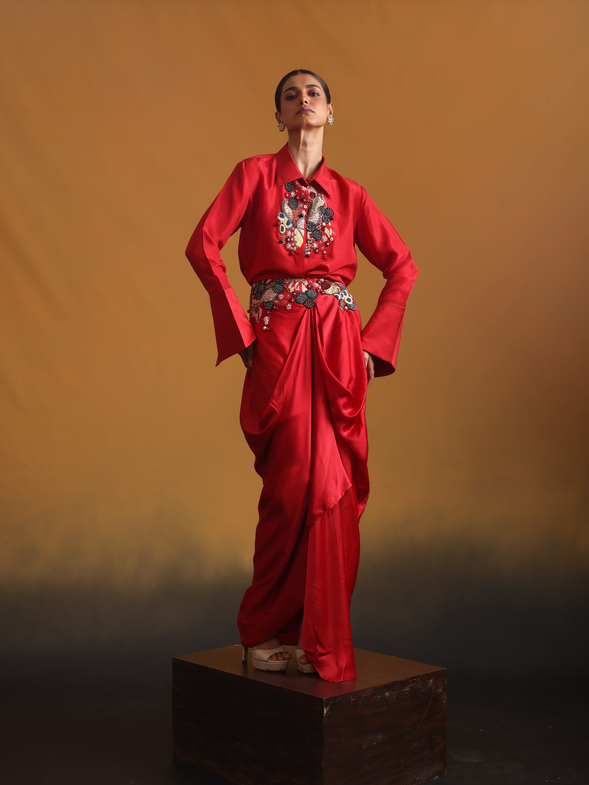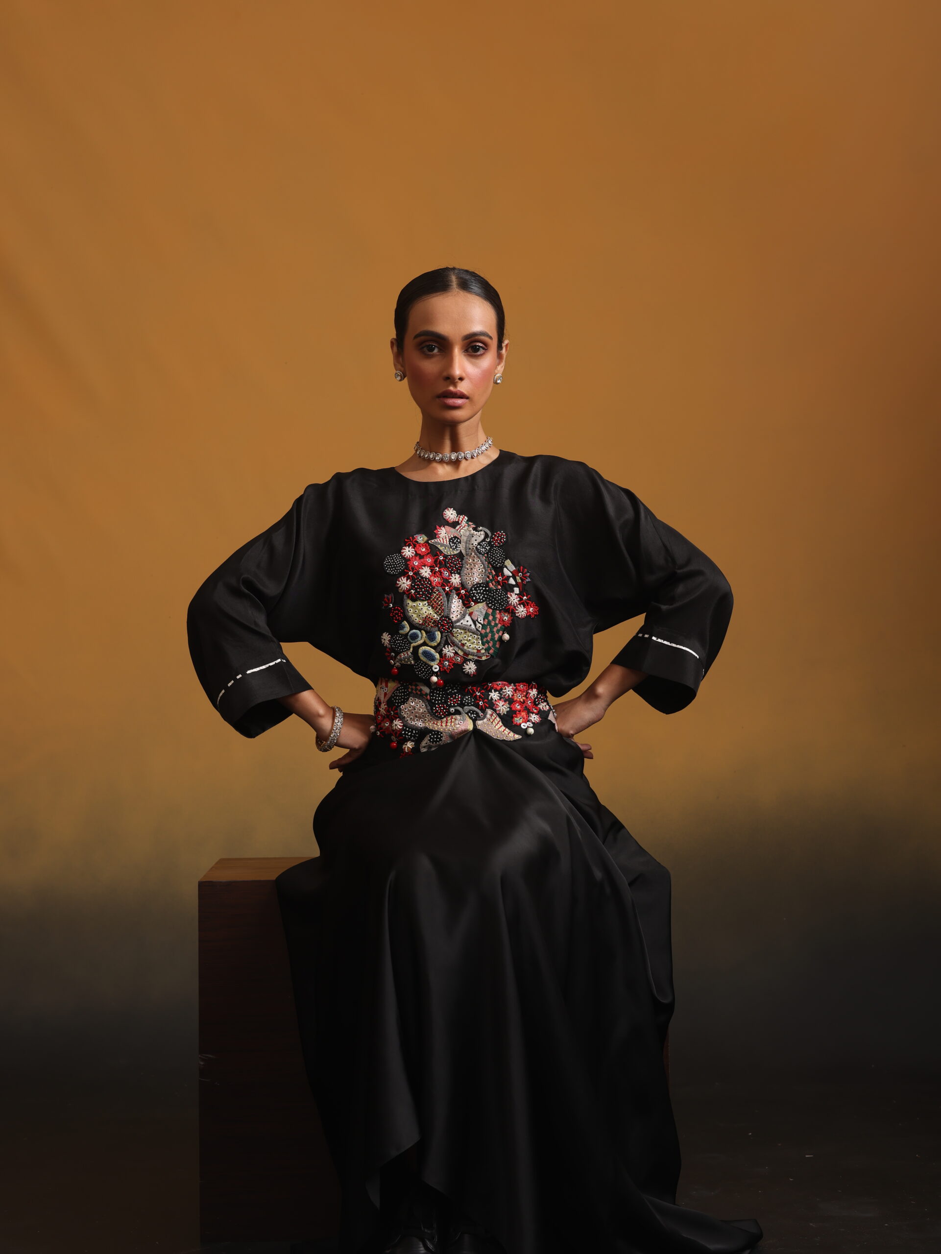 Habutai Silk Embroidered Top with Bottom belt Embroidery