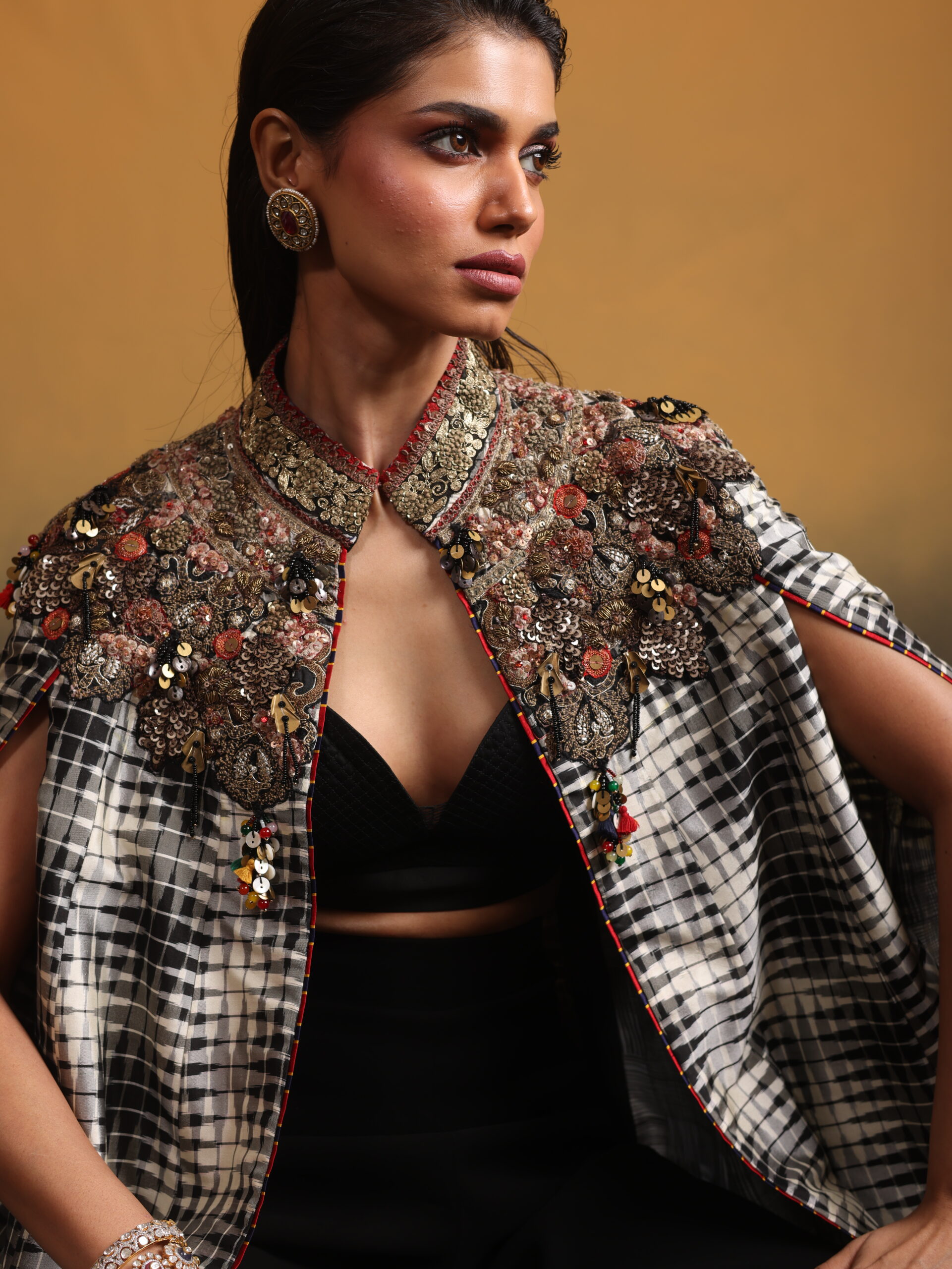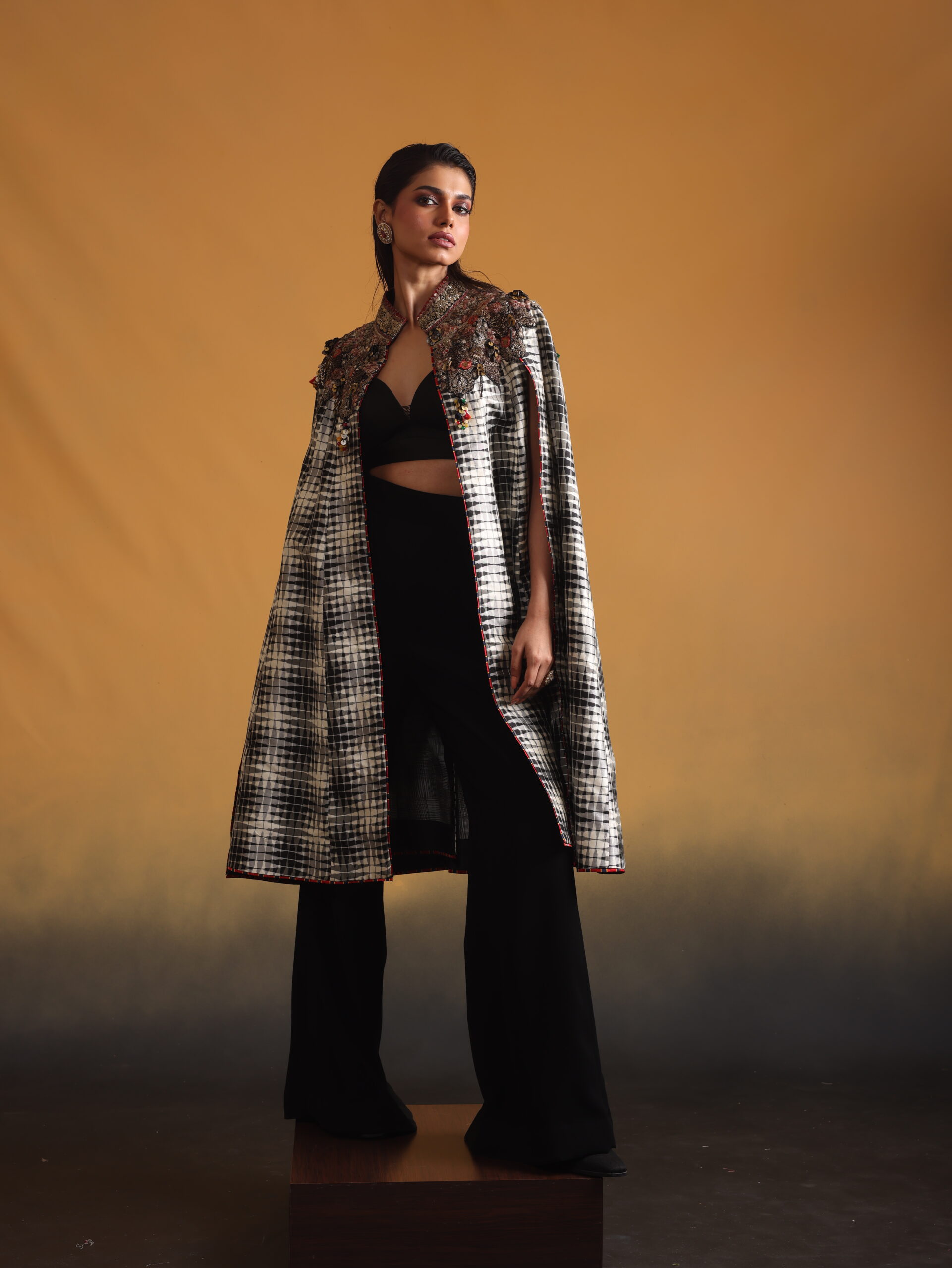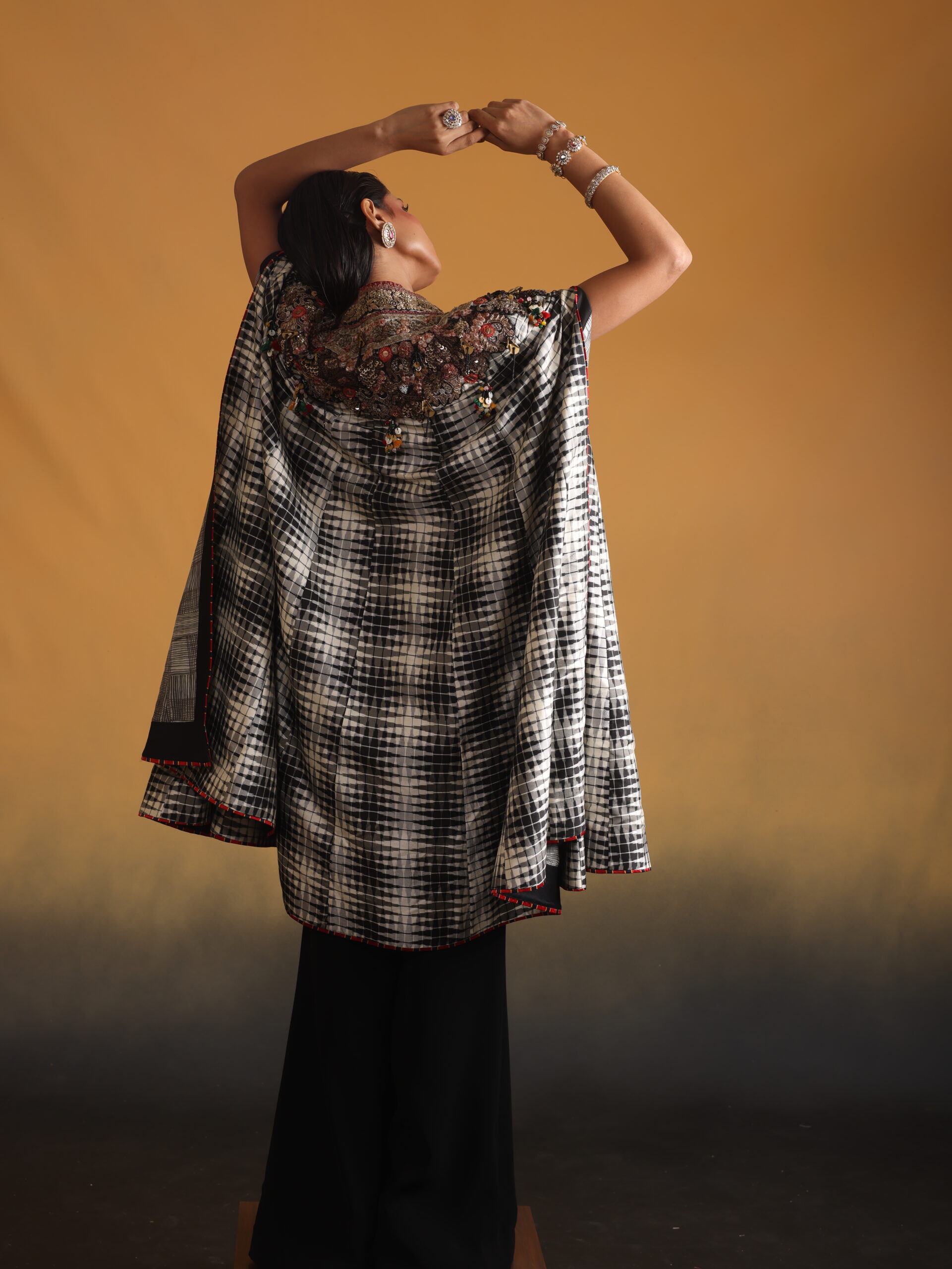 Ikkat Silk Embroidered Cape with Bustier & Bottom